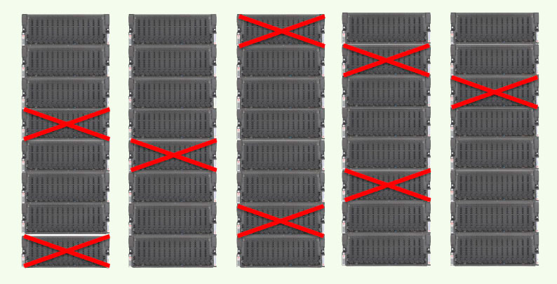 - сегментов хранения - 6-8 и более узлов хранения - многодисковые серверы