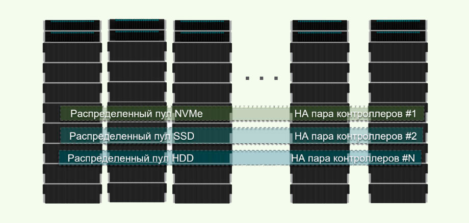 - Узлы хранения наращиваются сегментами по 6-8 и более узлов кратно стартовой инсталляции